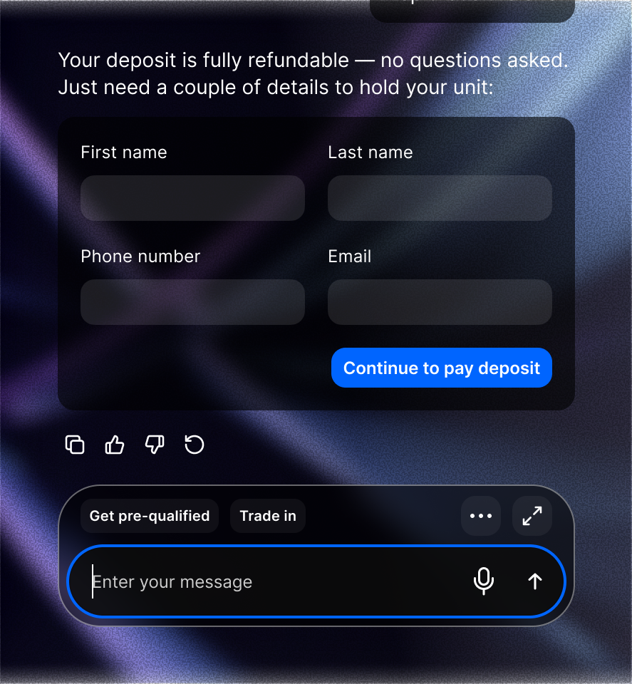 Yes. While each product works standalone, they share data and context when combined — so your Sales Agent knows your inventory, your Website reflects real-time pricing, and your Transaction Engine pulls from the same lead record. The result is a faster, more seamless experience for both your team and your customers.